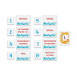 Contient un paquet de cartes Catégorie (Prénoms, Choses, Villes...), un paquet de cartes Lettre, des blocs pour écrire les mots et un sablier.