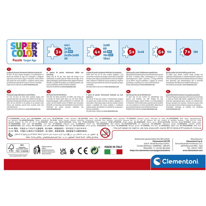 Depuis toujours sensible au problème de l’écologie, Clementoni utilise beaucoup de matériaux recyclés, évitant l’emploi de composants polluants. Made in Italy.