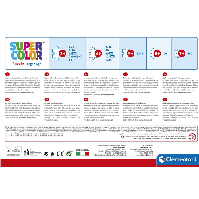 Depuis toujours sensible au problème de l’écologie, Clementoni utilise beaucoup de matériaux recyclés, évitant l’emploi de composants polluants. Made in Italy.
